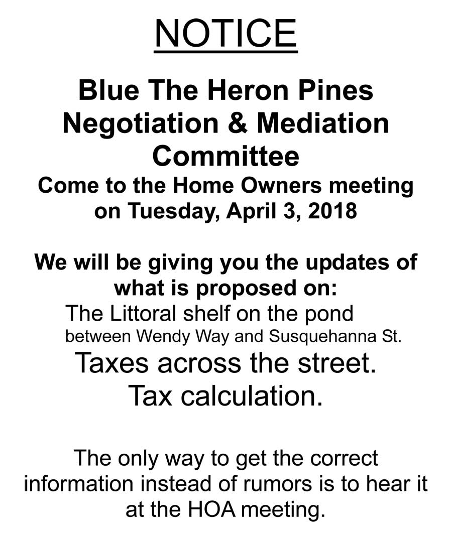 HOA Board of Directors meeting Thursday April 19 2018 at 1:00pm.