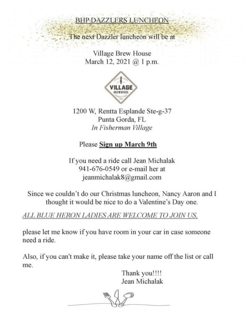 Dazzler's Luncheon Flyer - Feb. 12, 2021 @ 1:00 PM