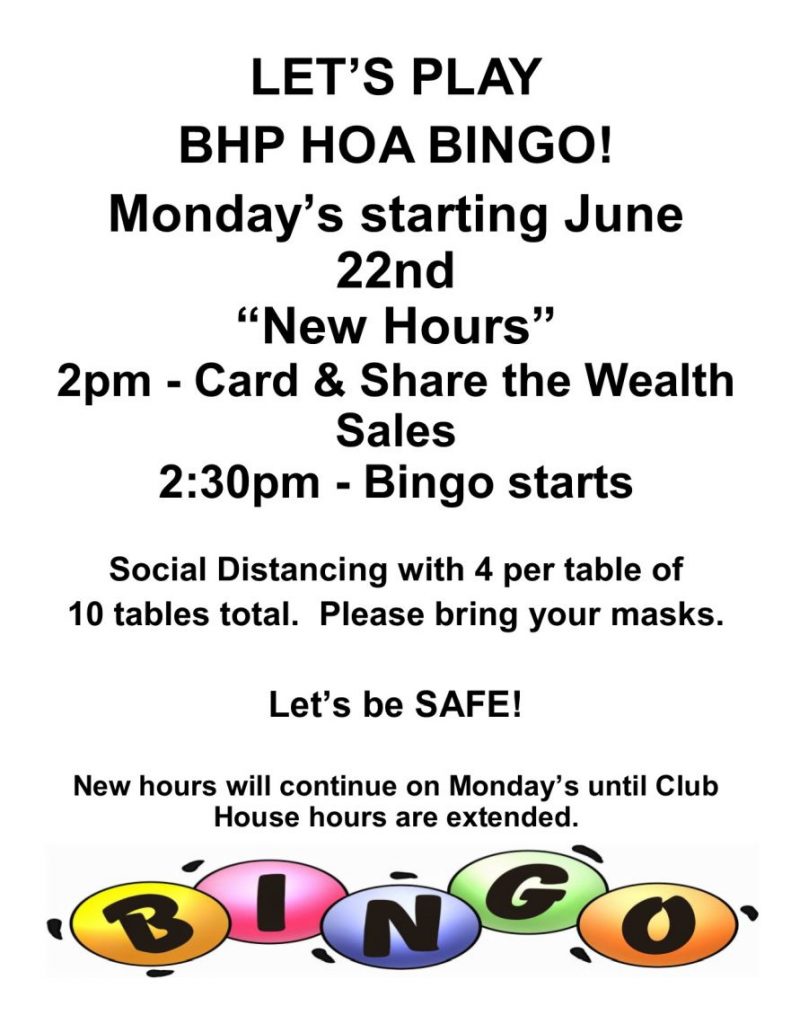 Bingo – Starting June 22, 2020