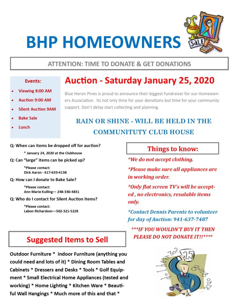 Don’t forget our annual auction on January 25, 2020.