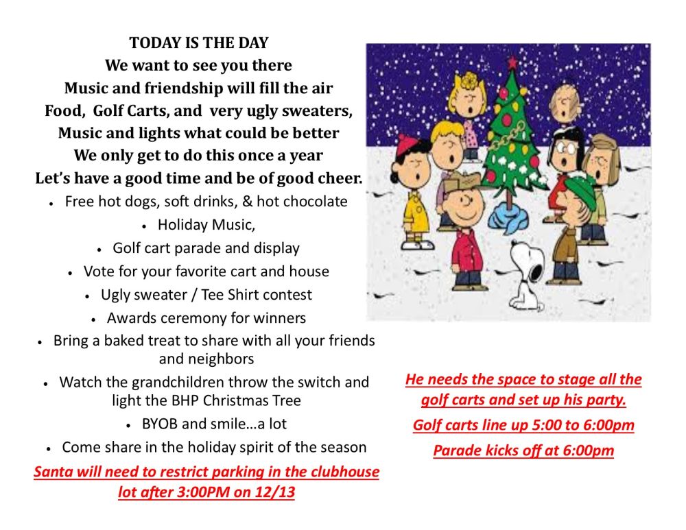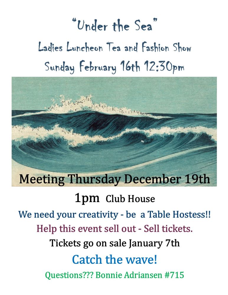 Tickets will be available at the mail kiosk Tuesday’s and Thursday’s from 2 – 4 PM beginning Dec 3rd.