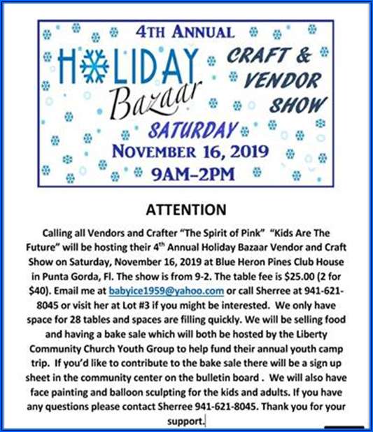 If you are interested in attending, there is a sign up sheet on the bulletin board in the clubhouse. Last day to sign up will be Friday, September 6, 2019.